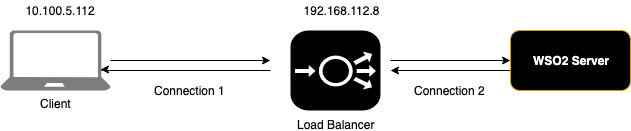 When you are accessing WSO2 servers through a LB the connections will be made as follows.